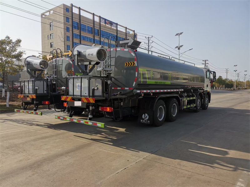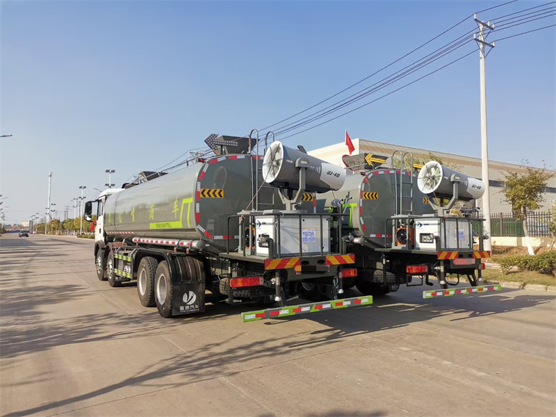 縱昂牌CLT5311TDYZZ6型多功能抑塵車(chē)標配前噴(鴨嘴 ) 、后 對沖、后灑、側噴、后置式工作平臺,平臺上配置綠化水炮(可 360°旋 轉, 既可以調成柱狀,也可以調成霧狀),配備優(yōu)質(zhì)大功率專(zhuān)用灑水泵(可自吸 自 排,可從河里或池塘抽水到罐體),取力器,雜物過(guò)濾網(wǎng),消防接口,自流球閥 系統、取力器、球閥、濾網(wǎng)均為國家標準產(chǎn)品,主管道加粗,法蘭墊、法蘭盤(pán) 加厚,大通徑球閥。整體具備性能優(yōu)良安全可靠、效率高、流量大、維修方便 等特點(diǎn)。