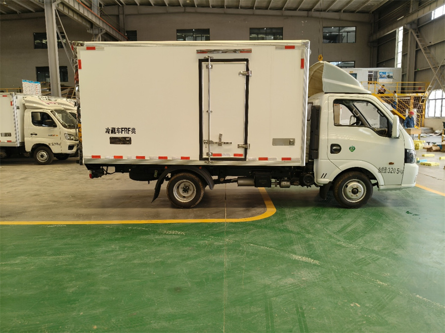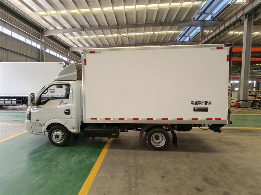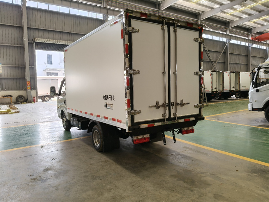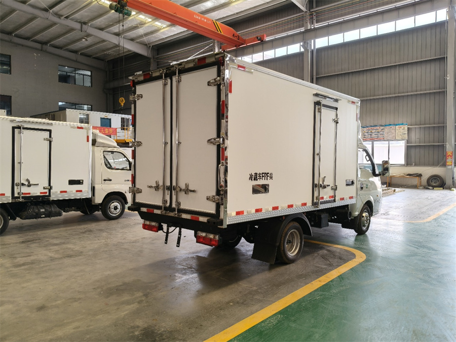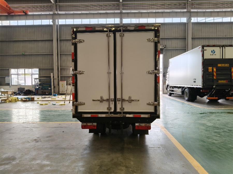 廂體工藝: 廂體材質(zhì)采用內外玻璃鋼,中間XPS保溫板,后雙開(kāi)門(mén),廂體右側靠前選裝開(kāi)側門(mén),底部采用花紋防滑鋁板,前部排水孔,門(mén)邊條采用迷宮式橡膠密封條,鋁合金型材包邊,不銹鋼包角,不銹鋼門(mén)鎖,不銹鋼門(mén)框及合頁(yè),廂體內節能LED照明燈。