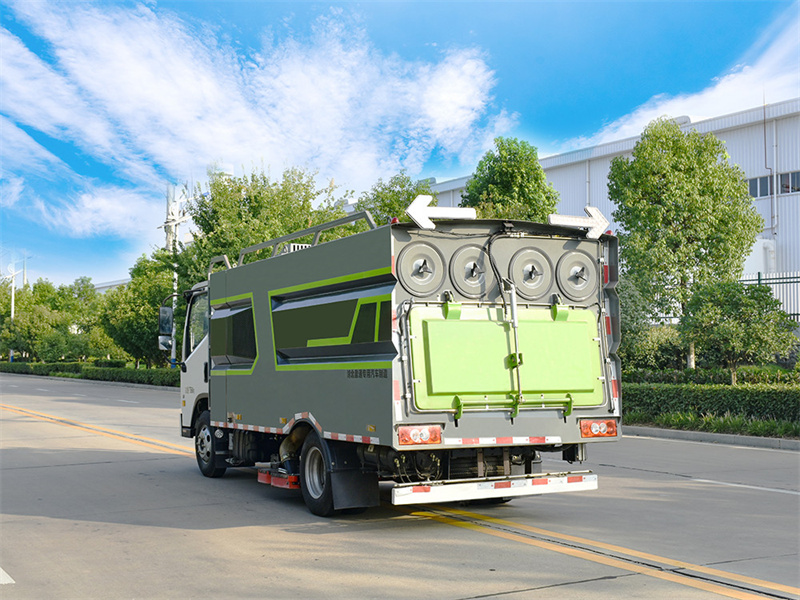 9.集塵箱自主研發(fā)三級降塵技術(shù),采用重力除塵,慣性除塵,濾網(wǎng)除 塵,并結合脈沖除塵技術(shù),既能將灰塵吸凈,又能防止濾網(wǎng)堵塞。10. 車(chē)輛后部集塵箱安裝手動(dòng)吸口,可連接吸塵管直接手動(dòng)操作。