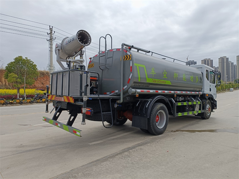 東風(fēng)15-16噸霧炮灑水車(chē)產(chǎn)品標配前噴(鴨嘴)、后沖、后灑、側噴、后置式工作 平臺,平臺上配置綠化水炮(可 360°旋轉,既可以調成柱狀,也可 以調成霧狀,更可以調成直沖狀、大雨、中雨、小雨、毛毛雨),配 備優(yōu)質(zhì)大功率專(zhuān)用灑水泵(可自吸自排,可從河里或池塘抽水到罐體), 取力器,雜物過(guò)濾網(wǎng),消防接口,自流球閥系統、取力器、球閥、濾網(wǎng) 均為國家標準產(chǎn)品,主管道加粗,法蘭墊、法蘭盤(pán)加厚,大通徑球閥。 整體具備性能優(yōu)良安全可靠、效率高、流量大、維修方便等特點(diǎn)